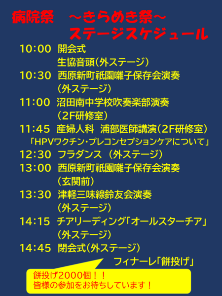 10月26日(日) 10:00~15:00、第8回となる病院祭を開催します。